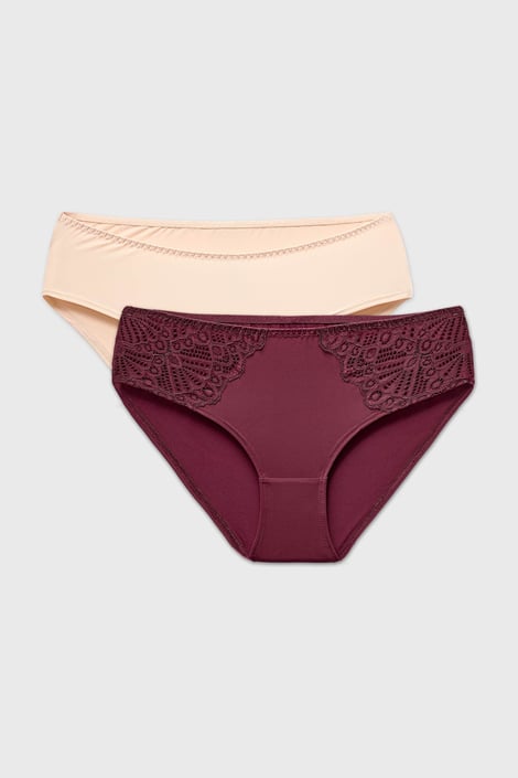 Διπλή συσκευασία με το κλασικό σλιπ Lorena από απαλές μικροΐνες. Σε πρακτικό nude και γοητευτικό μπορντό χρώμα.