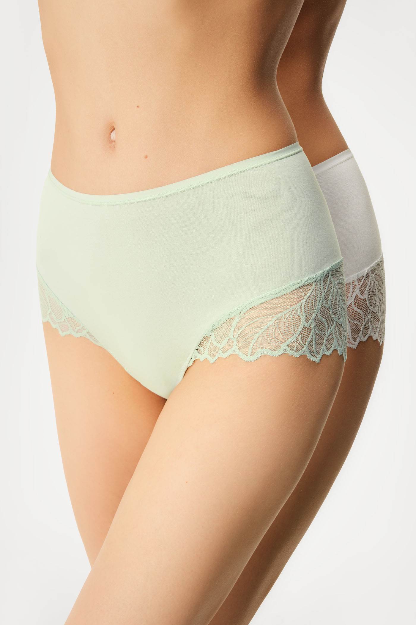 Βαμβακερό σλιπ Pinky διακοσμημένο με ντελικάτη δαντέλα. Το κλασικό ψηλόμεσο κόψιμο κολακεύει κάθε σιλουέτα.