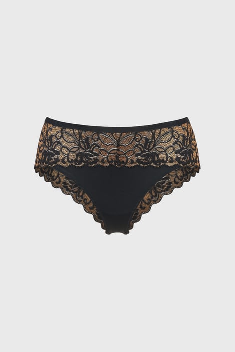 Brazil σλιπ Gold Moon που είναι ιδιαίτερα διακοσμημένο με πλούσια χρυσομαύρη δαντέλα και δείχνει πολύ κομψό. Ο σχεδιασμός του εσώρουχου κολακεύει τις καμπύλες σας.
