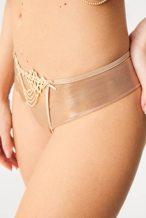 Brazil σλιπ Valeria σε εντυπωσιακή χρυσαφί απόχρωση. Με πλούσια διακοσμητικά κεντήματα.