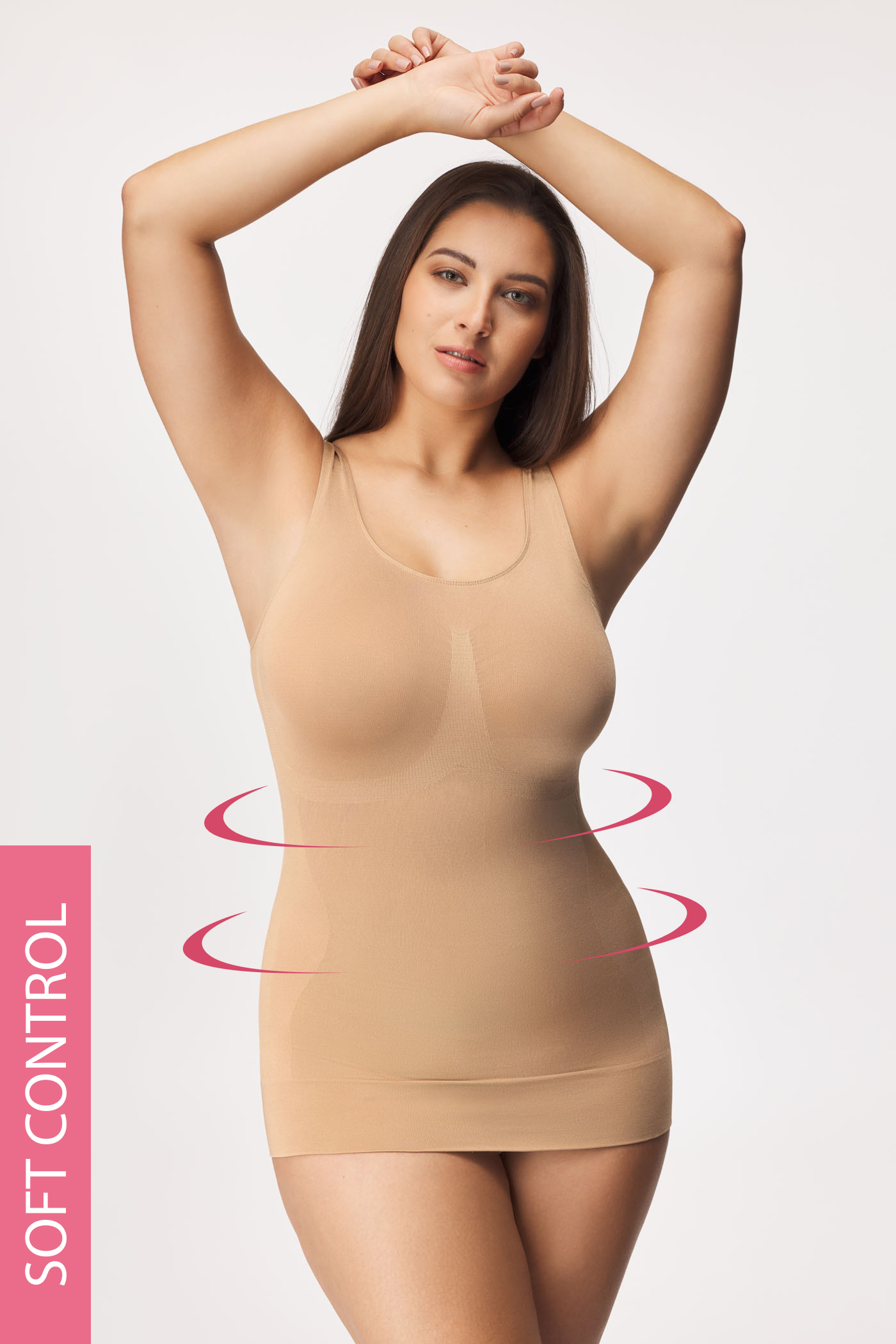 Θα λατρέψετε το φανελάκι σύσφιξης PLUS SIZE Smoothwear για την ικανότητά του να αδυνατίζει και να λειαίνει το περίγραμμα των γοφών, της κοιλιάς και της πλάτης σας. Είναι τελείως δυσδιάκριτο κάτω από τα ρούχα σας. Απαραίτητο κάτω από μπλουζάκια και στενά ρούχα.