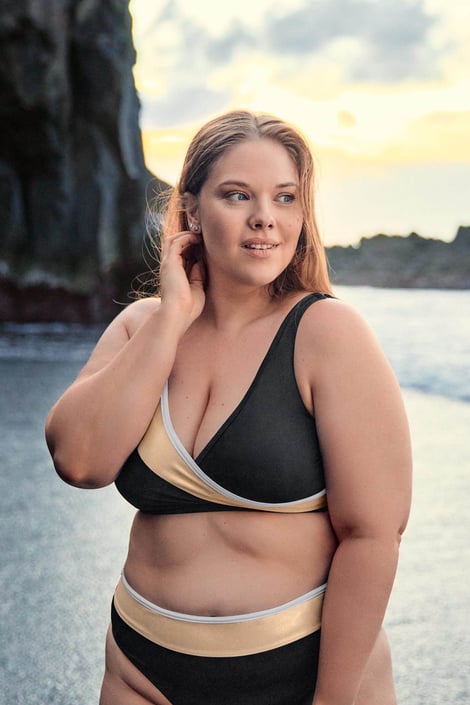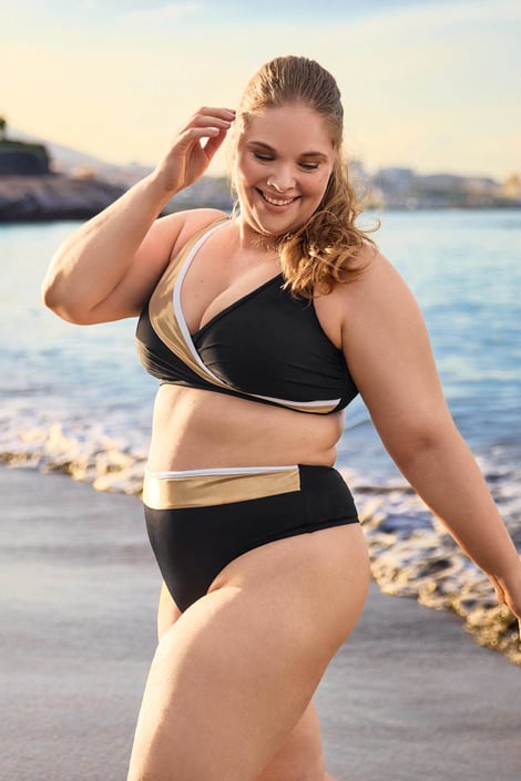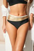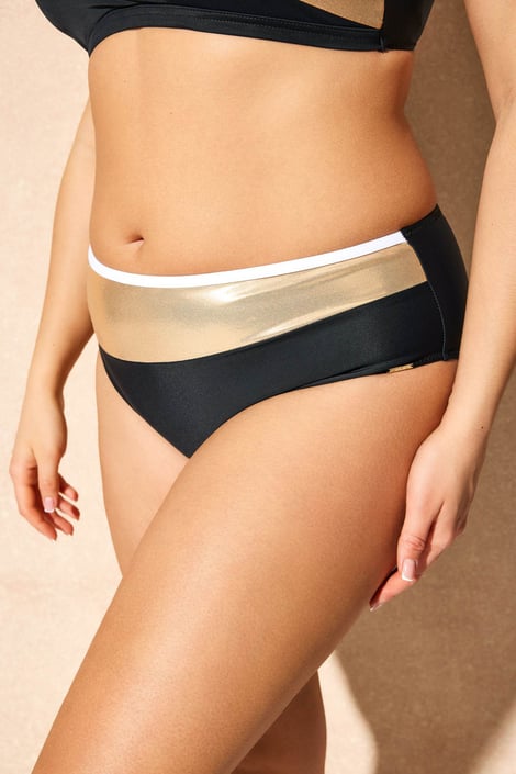 Κάτω μέρος του μαγιό Zari σε εντυπωσιακό συνδυασμό μαύρου και χρυσού, το οποίο χάρη στο γυαλιστερό εφέ αναδεικνύεται υπέροχα στο σώμα. Το δημοφιλές κλασικό κόψιμο είναι άνετο στη χρήση και ταιριάζει σε κάθε καμπύλη. Από τους ειδικούς της Astratex.