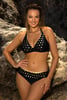 Το μαγιό Elena IV είναι ένα διμερές μαγιό που τονίζει κομψά τις θηλυκές σας καμπύλες. Χάρη στις μπανέλες, ακόμα και τα πιο γεμάτα στήθη μπορούν να αντέξουν τα τριγωνικά cups, ενώ το χρυσό ύφασμα μαγιό με την αντίθεση προσθέτει όγκο. Με κλασικό σλιπ.