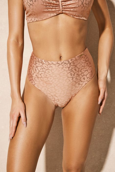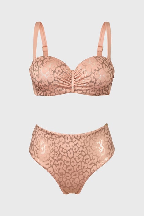 Το μαγιό δύο τεμαχίων Fancy Panther I σμιλεύει την τέλεια σιλουέτα. Το όμορφο ντεκολτέ είναι εγγυημένο από τα ενισχυμένα cups με το εφέ Push-Up, οι αφαιρούμενες τιράντες εξασφαλίζουν άψογο μαύρισμα. Το σλιπ σε γραμμή στρινγκ στρογγυλεύει τους γλουτούς και η ψηλή μέση λειαίνει την κοιλιά. Το χρώμα της πούδρας συμπληρώνεται από ένα διακριτικό χρυσό animal print. Από το ατελιέ της Astratex.
