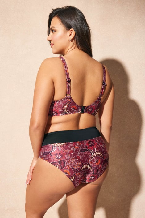 Τα μαγιό δύο τεμαχίων Kalbeliya θα εκτιμηθούν ιδιαίτερα από τις κυρίες με γεμάτες σιλουέτες. Το σουτιέν ντύνει τα προσόντα σας με ένα πλούσιο ανατολίτικο μοτίβο. Τα μη ενισχυμένα cups με τις λεπτές σούρες βοηθούν στην οπτική διαμόρφωση του ντεκολτέ σας. Το κλασικό κόψιμο του σλιπ καλύπτει απαλά τις καμπύλες σας στο πίσω μέρος, ενώ η ψηλότερη ζώνη στη μέση κρύβει μια πιο μαλακή κοιλιά. Με ανατολίτικο σχέδιο.