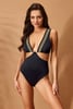 Το ολόσωμο μαγιό Bole αποκαλύπτει διακριτικά τις θηλυκές καμπύλες. Το κομψό μαύρο σχέδιο είναι διακοσμημένο με πλούσια κεντήματα στο ντεκολτέ.