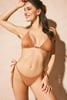 Το μπικίνι Gold Lurex θα γυαλίζει με χρυσή λάμψη στο μαυρισμένο σώμα σας. Το σουτιέν με το δημοφιλές τριγωνικό κόψιμο είναι κατάλληλο για κάθε τύπο στήθους. Τα μη ενισχυμένα cups, χωρίς μπανέλες, ενώνονται με ένα χρυσό κρίκο στο κέντρο. Το κλασικό σλιπ μπορεί να προσαρμοστεί στο μέγεθός σας με δέσιμο στα πλάγια. Από το ατελιέ της Astratex.