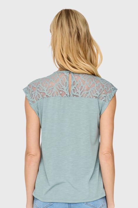 Το μπλουζάκι ONLY ONLSindy Life από μαλακό πλεκτό συμπληρώνεται από δαντέλα στο πάνω μέρος. Κλείνει με κουμπί πίσω στο λαιμό.