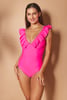 Με το ολόσωμο μαγιό Pinkie σε νέον απόχρωση δεν πρόκειται να περάσετε απαρατήρητη. Τα μη ενισχυμένα cups διακοσμούνται με βολάν που καταλήγουν ελεύθερα στις τιράντες. Κουμπώνει στην πλάτη με ένα κλιπ μαγιό.