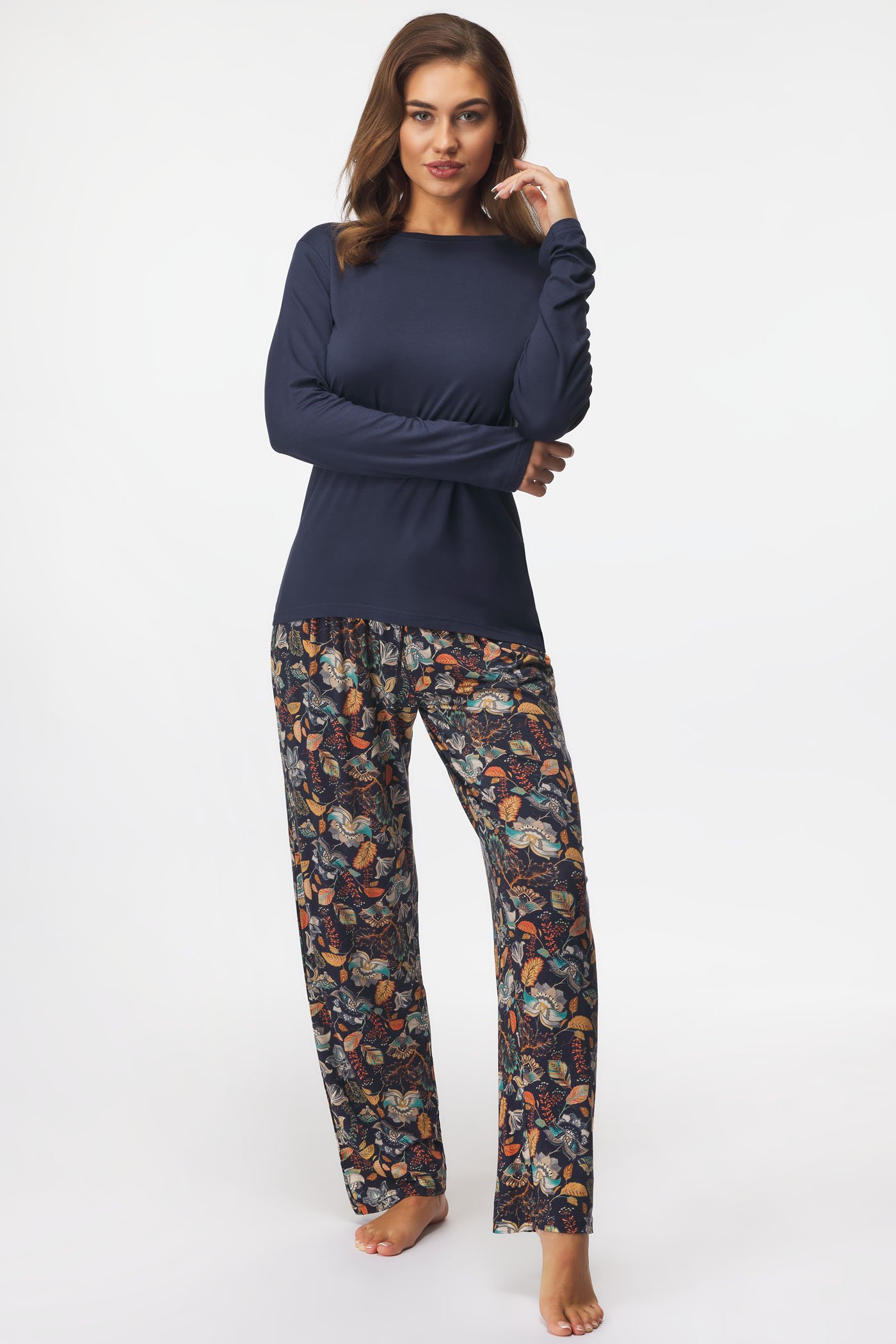 Θα νιώσετε εξαιρετικά άνετα με τη γυναικεία πιτζάμα Harmony. Το μπλουζάκι και το παντελόνι είναι κατασκευασμένα από απαλή βισκόζη, η οποία είναι αέρινη και ελαφριά στο σώμα.