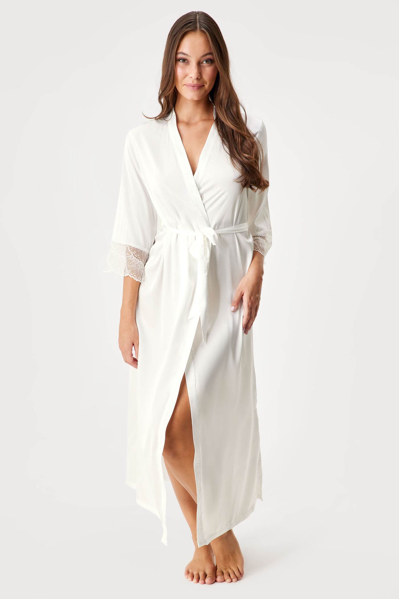 Μήπως αναζητάτε ένα κομψό νυχτερινό κομμάτι; Τότε φορέστε τη ρόμπα Ginny από μαλακό σατέν. Τα μανίκια είναι διακοσμημένα με λεπτή δαντέλα.