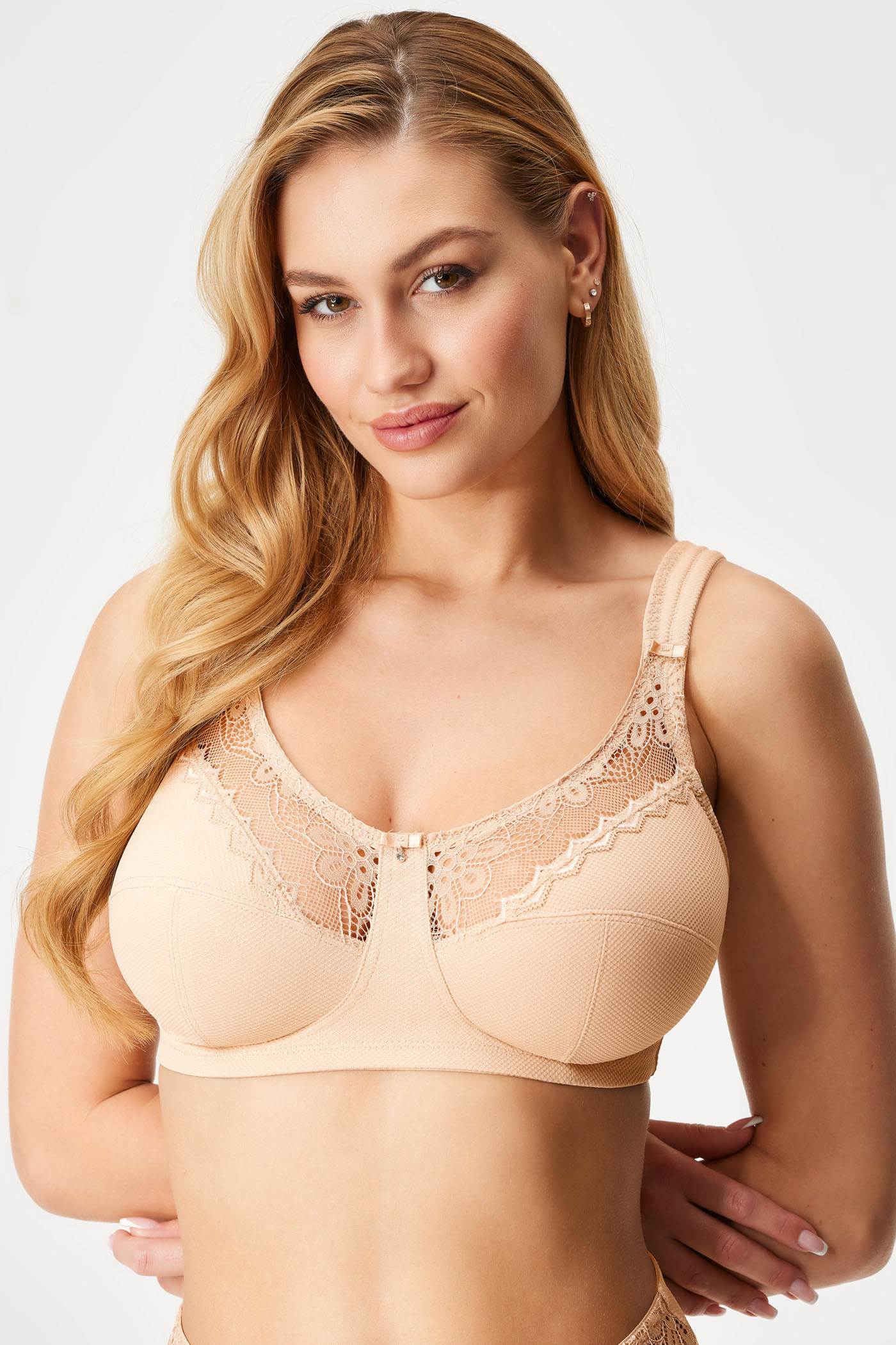 Το σουτιέν Comfort χωρίς ενίσχυση προσφέρει απόλυτη άνεση για μεγάλα και βαριά στήθη. Τα μη ενισχυμένα cups ξεχωρίζουν για τον άνετο σχεδιασμό τους χωρίς μπανέλες και το κολακευτικό T-cut, το οποίο σμιλεύει το στήθος με χάρη. Οι μαλακά επενδυμένες τιράντες βοηθούν στην κατανομή του βάρους του στήθους και ανακουφίζουν την πλάτη και τον αυχένα σας.