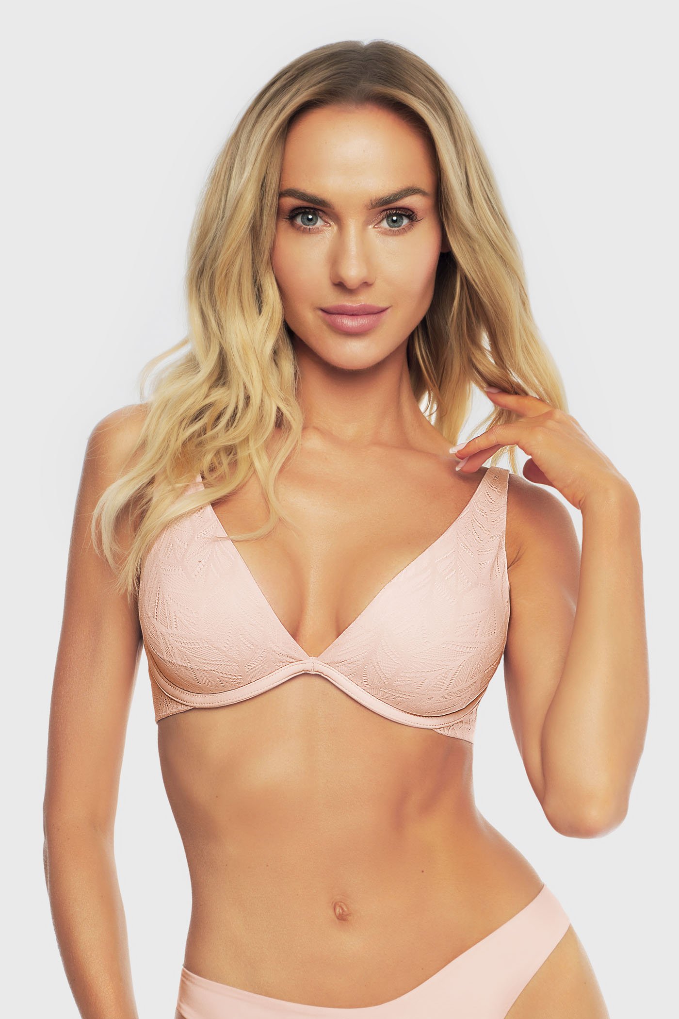 Το σουτιέν Doll είναι ένα εξαιρετικά πρακτικό κομμάτι εσωρούχων. Ο σχεδιασμός διπλής όψεως σας επιτρέπει να έχετε ένα απόλυτα λείο και ένα λεπτεπίλεπτα δαντελωτό σουτιέν σε ένα. Η μία πλευρά είναι από λείες, διακριτικές, γυαλιστερές μικροΐνες που προσαρμόζονται στο σώμα σας και δεν φαίνονται κάτω από στενά ρούχα. Η άλλη πλευρά είναι κατασκευασμένη από λεπτή δαντέλα που μοιάζει με ιστό αράχνης. Χάρη στο χαμηλό κέντρο, έχετε την πολυτέλεια να το φορέσετε ακόμα και σε βαθιά ντεκολτέ.