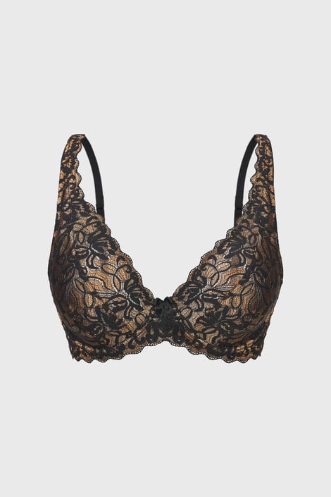 Ένα κομψό δαντελένιο σουτιέν από τους ειδικούς της Astratex. Τα μη ενισχυμένα cups είναι διακοσμημένα με πλούσια χρυσομαύρη δαντέλα που αναδεικνύεται όμορφα στο σώμα. Απολαύστε την αίσθηση της μοναδικότητας και της πολυτέλειας.
