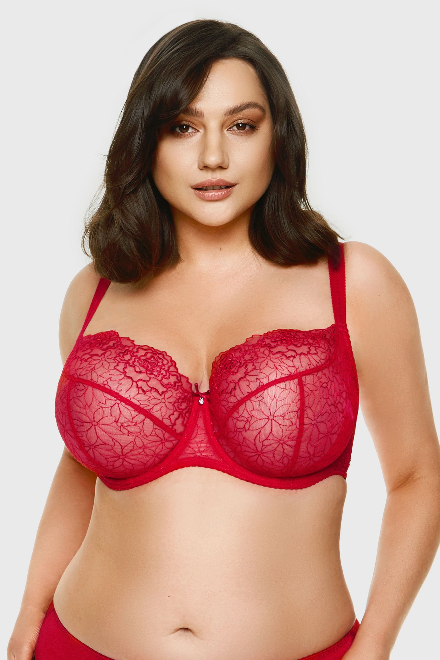 Το σουτιέν Pamela κάνει τη φυσική ομορφιά του στήθους να ξεχωρίζει. Τα cups χωρίς ενίσχυση είναι κατασκευασμένα από λεπτό τούλι, το οποίο είναι διακοσμημένο με όμορφο φλοράλ κέντημα. Τα cups σε Τ γραμμή σμιλεύει το στήθος, ενώ το ψηλό κέντρο το συγκρατεί σταθερό.