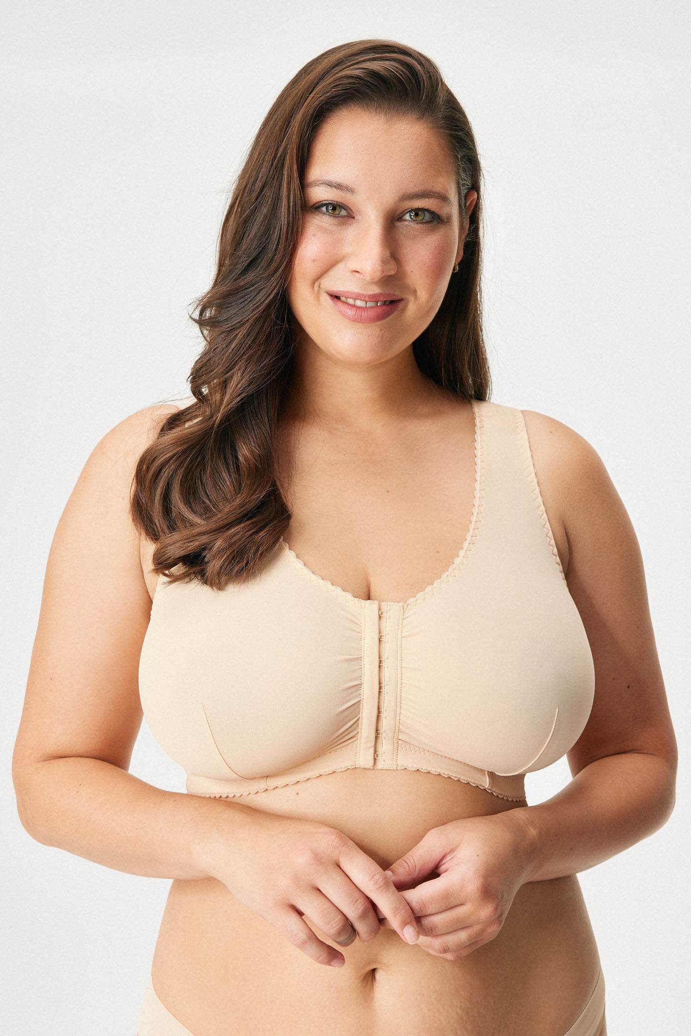 Οι γυναίκες με πιο γεμάτο στήθος θα εκτιμήσουν το σουτιέν Sara II από μαλακές μικροΐνες. Τα μη ενισχυμένα cups χωρίς μπανέλες παρέχουν φυσική στήριξη στο στήθος. Οι τιράντες είναι μαλακότερες για μεγαλύτερη άνεση, χωρίς ρύθμιση του μήκους. Το σουτιέν κουμπώνει μπροστά με μια σειρά από κόπιτσες.
