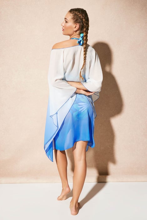 Η τουνίκ παραλίας Padma Ombre II σας τυλίγει σε απαλές αποχρώσεις του μπλε και του λευκού. Η χαλαρή εφαρμογή χαρίζει απόλυτη άνεση στις καμπύλες σας, το ελαφρύ υλικό ρέει με χάρη πάνω στο σώμα.