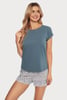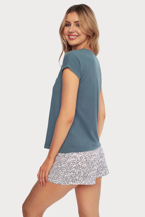 Γυναικεία βαμβακερή πιτζάμα Dizzy με λεπτό φλοράλ μοτίβο. Το κοντομάνικο μπλουζάκι είναι διακοσμημένο με μια μικρή τσέπη στο στήθος.