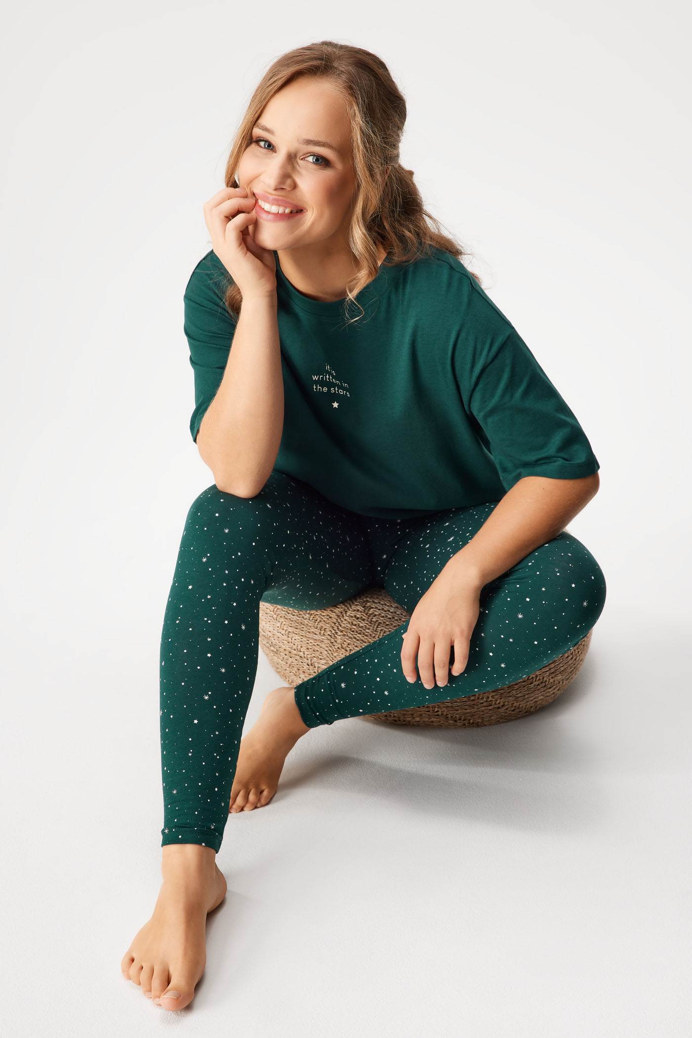 Γυναικεία πιτζάμα Febe από 100% βαμβάκι για τη νυχτερινή σας άνεση. Το μπλουζάκι με διακριτικό σχέδιο συμπληρώνεται από ένα μακρύ παντελόνι με μικροσκοπικά αστέρια.