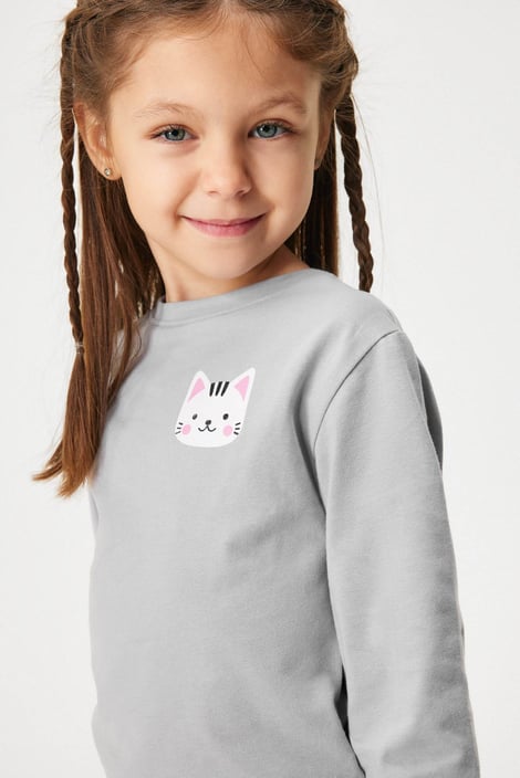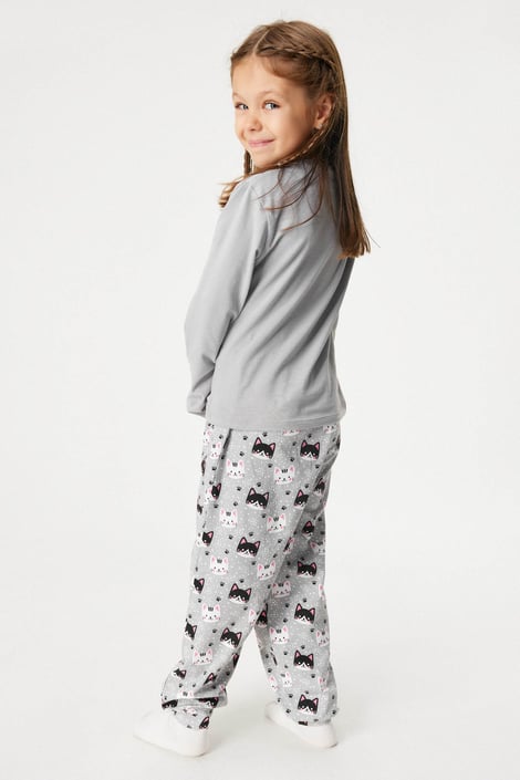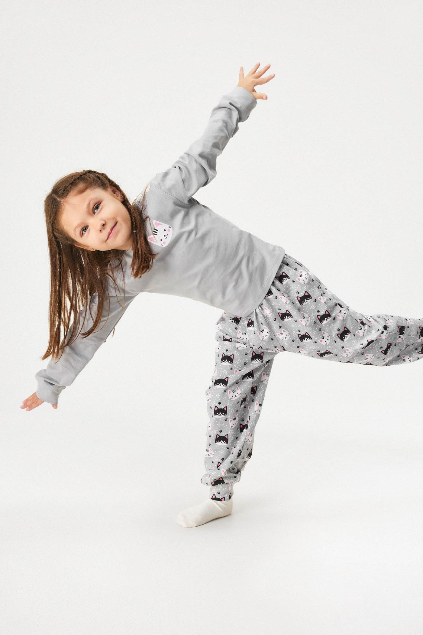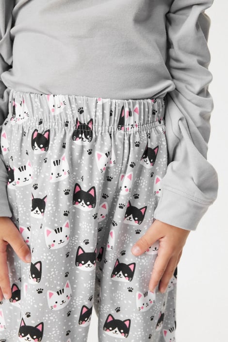 Η βαμβακερή πιτζάμα για κορίτσια Cats θα ενθουσιάσει τις μικρές κυρίες με τα χαριτωμένα γατάκια της. Το μπλουζάκι είναι μονόχρωμο με μια μικρή εικόνα μπροστά, ενώ το παντελόνι είναι εξ'ολοκλήρου τυπωμένο. Τα μακριά μανίκια και τα μπατζάκια τελειώνουν με μανσέτες. Η μέση του παντελονιού είναι ραμμένη με λάστιχο. Σχεδιασμένη από τους ειδικούς της Astratex.