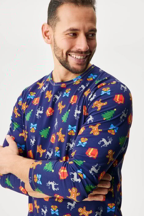 Ανδρική χριστουγεννιάτικη πιτζάμα Lopping Vánoce από μαλακό βαμβάκι για τη νυχτερινή σας άνεση. Το μπλουζάκι είναι διακοσμημένο με ένα χαρούμενο τύπωμα με χριστουγεννιάτικο μοτίβο, ενώ το μακρύ παντελόνι είναι μονόχρωμο.