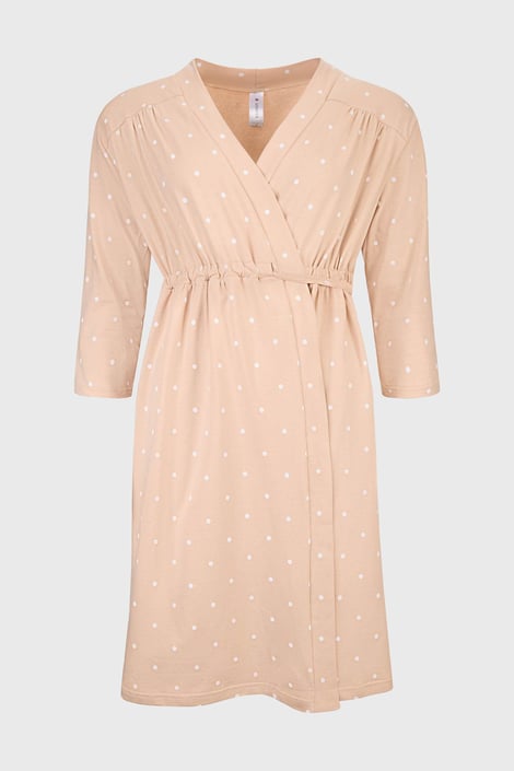 Η κοντή ρόμπα εγκυμοσύνης Dots από μαλακό βαμβακερό ύφασμα δεν πρέπει να λείπει από τα είδη που χρειάζεστε για τη μητρότητα. Η άνετη γραμμή με δέσιμο κάτω από το στήθος θα προσαρμόζεται στην αυξανόμενη κοιλιά σας. Σχεδιασμένη από τους ειδικούς της Astratex σε σχέδιο με πουά.