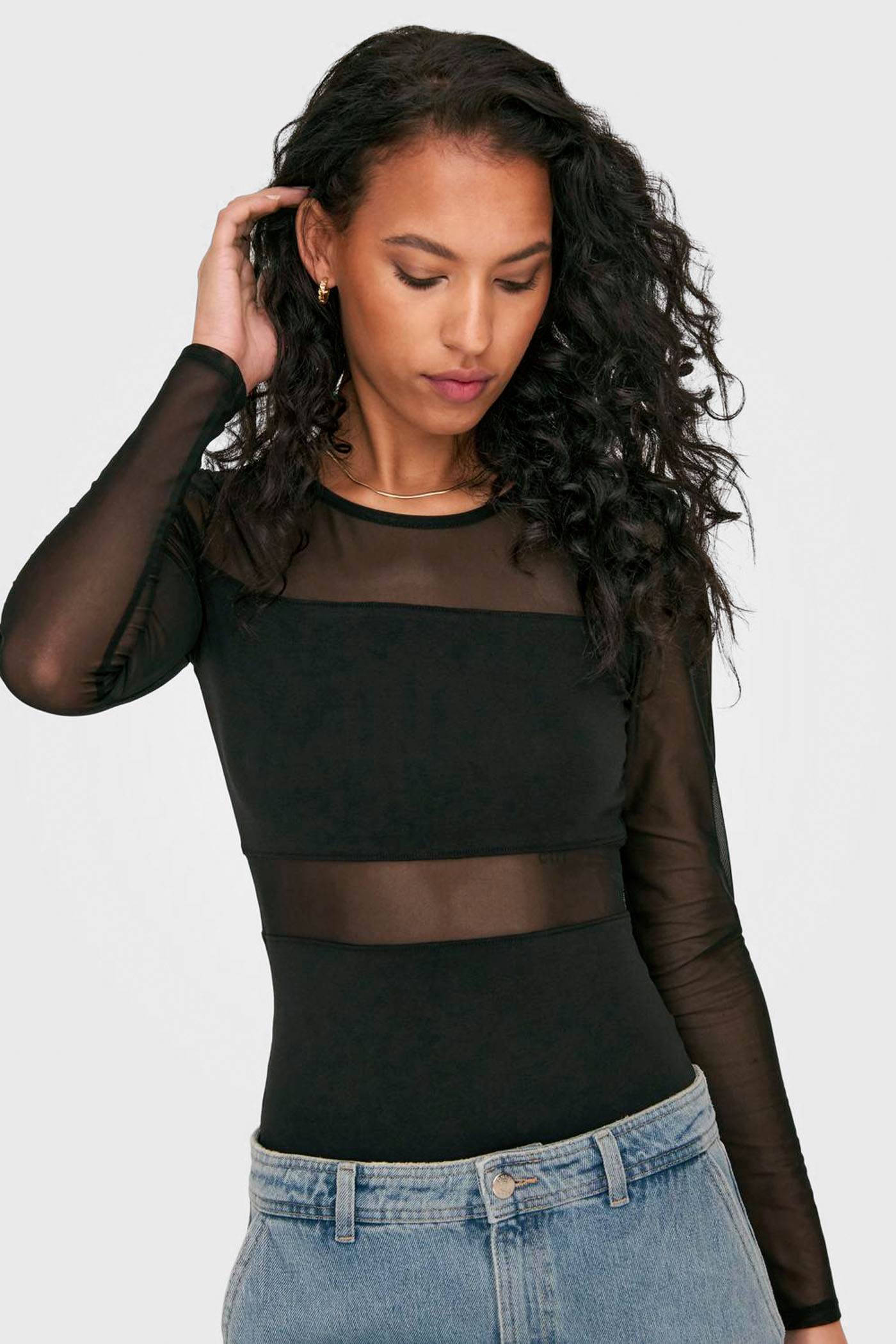 Γυναικείο κορμάκι ONLY ONLEsther σε κομψό συνδυασμό βαμβακερού και διάφανου διχτυωτού υφάσματος. Φορέστε το με στενό τζιν ή φούστα και απολαύστε το γεγονός ότι τίποτα δεν προβάλλει αντιαισθητικά. Να είστε σικάτη!